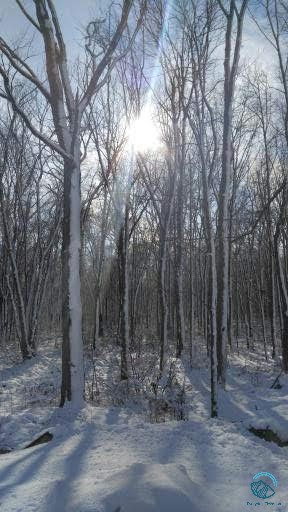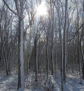 Sunlight through snowy trees – photo by Jill Rushbrook